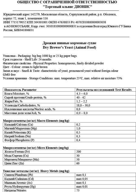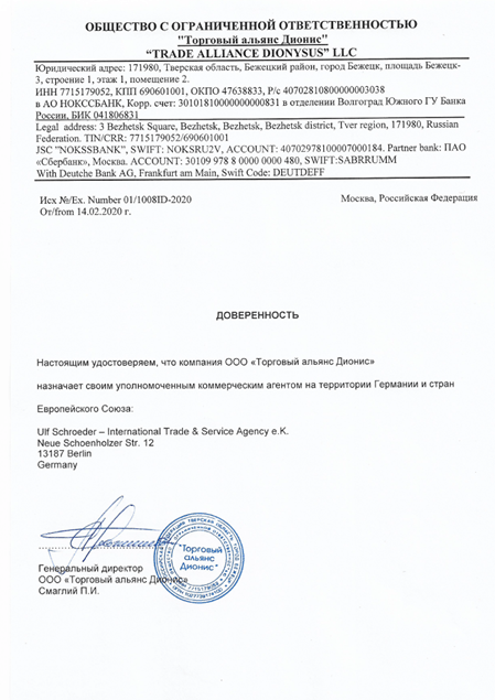 ООО «ТОРГОВЫЙ АЛЬЯНС ДИОНИС», Россия